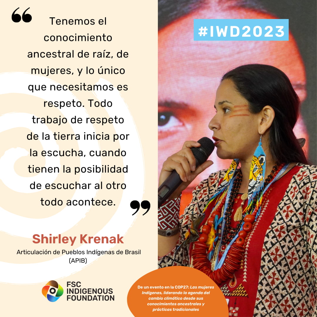 La Fundación Indígena FSC está comprometido con el empoderamiento de las Mujeres Indígenas como líderesas, proveedoras de soluciones y parte integral del autodesarrollo holístico. Un futuro sin Mujeres Indígenas será un futuro en el que la Madre Tierra estará en peligro.