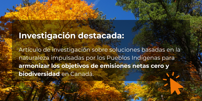 Artículo de investigación sobre cómo las Soluciones Basadas en la Naturaleza lideradas por Pueblos Indígenas alinean los objetivos de cero emisiones netas y biodiversidad en Canadá