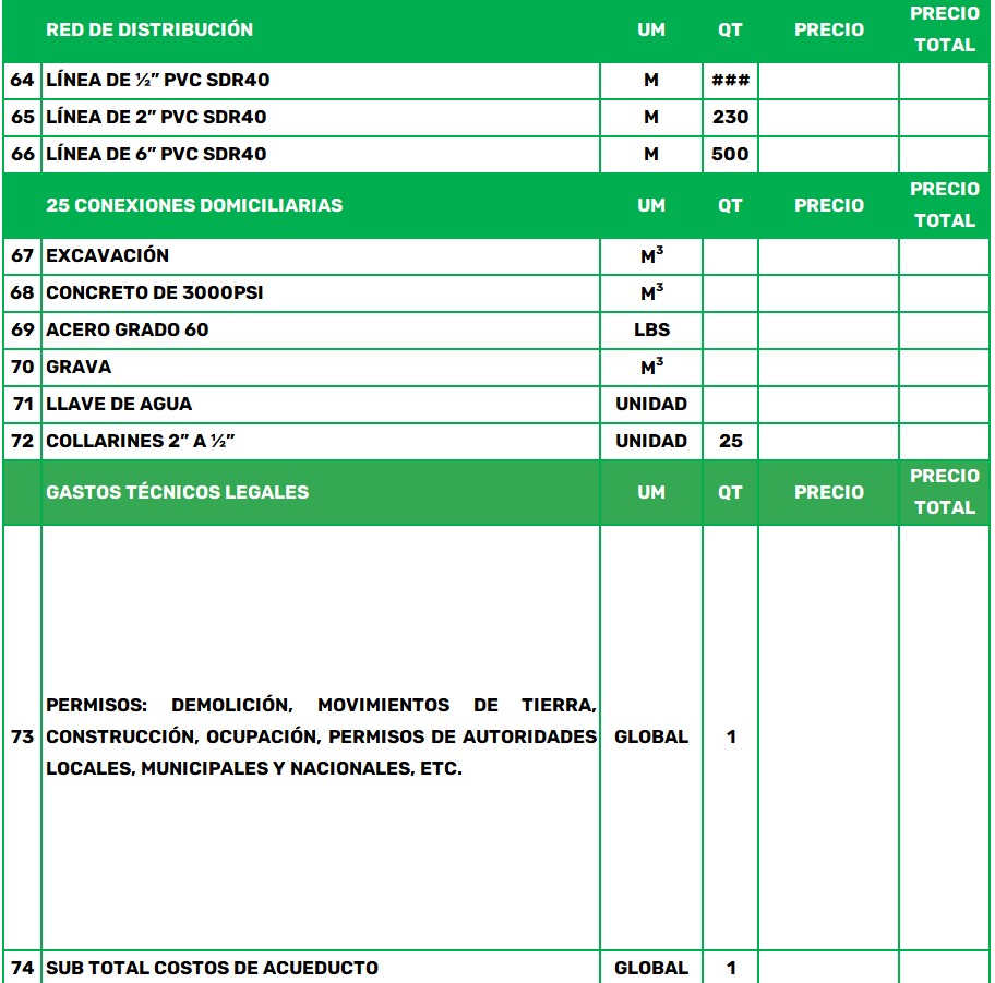 - Los planos presentados para el acueducto es la guía del alcance del proyecto y en el caso de los módulos es de acuerdo al punto 4 (desglose de trabajos de los módulos sanitarios).