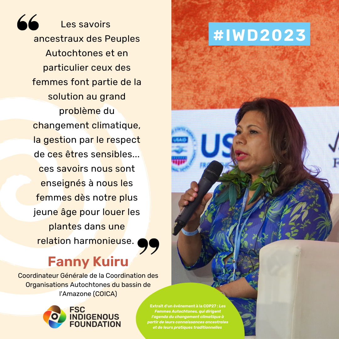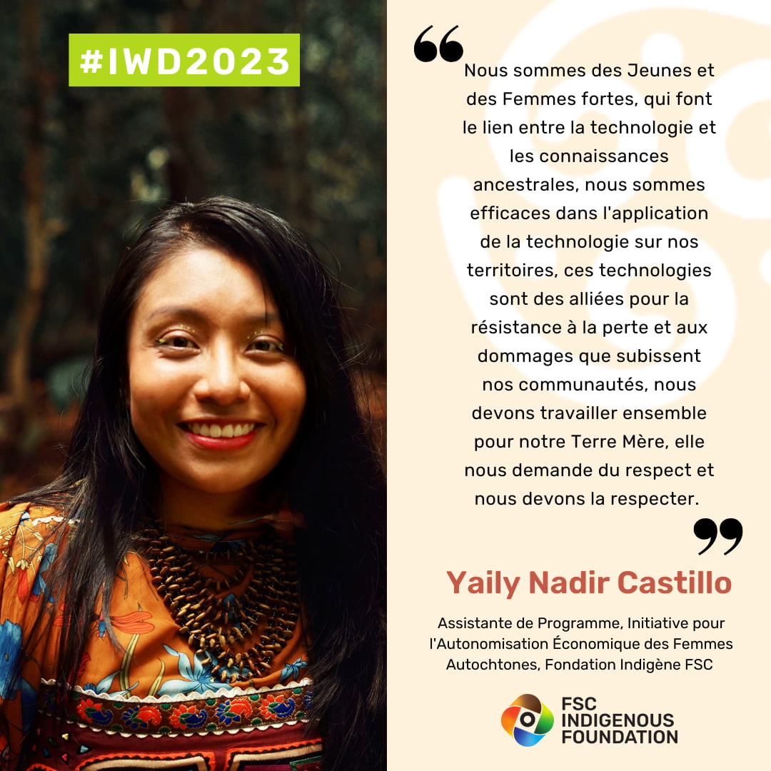 La Fondation Indigène FSC s’engage à renforcer les capacités des Femmes Autochtones en tant que leaders, sources de solutions et parties intégrantes d’un développement personnel holistique. Un avenir sans Femmes Autochtones sera un avenir où la Terre Mère sera en danger.