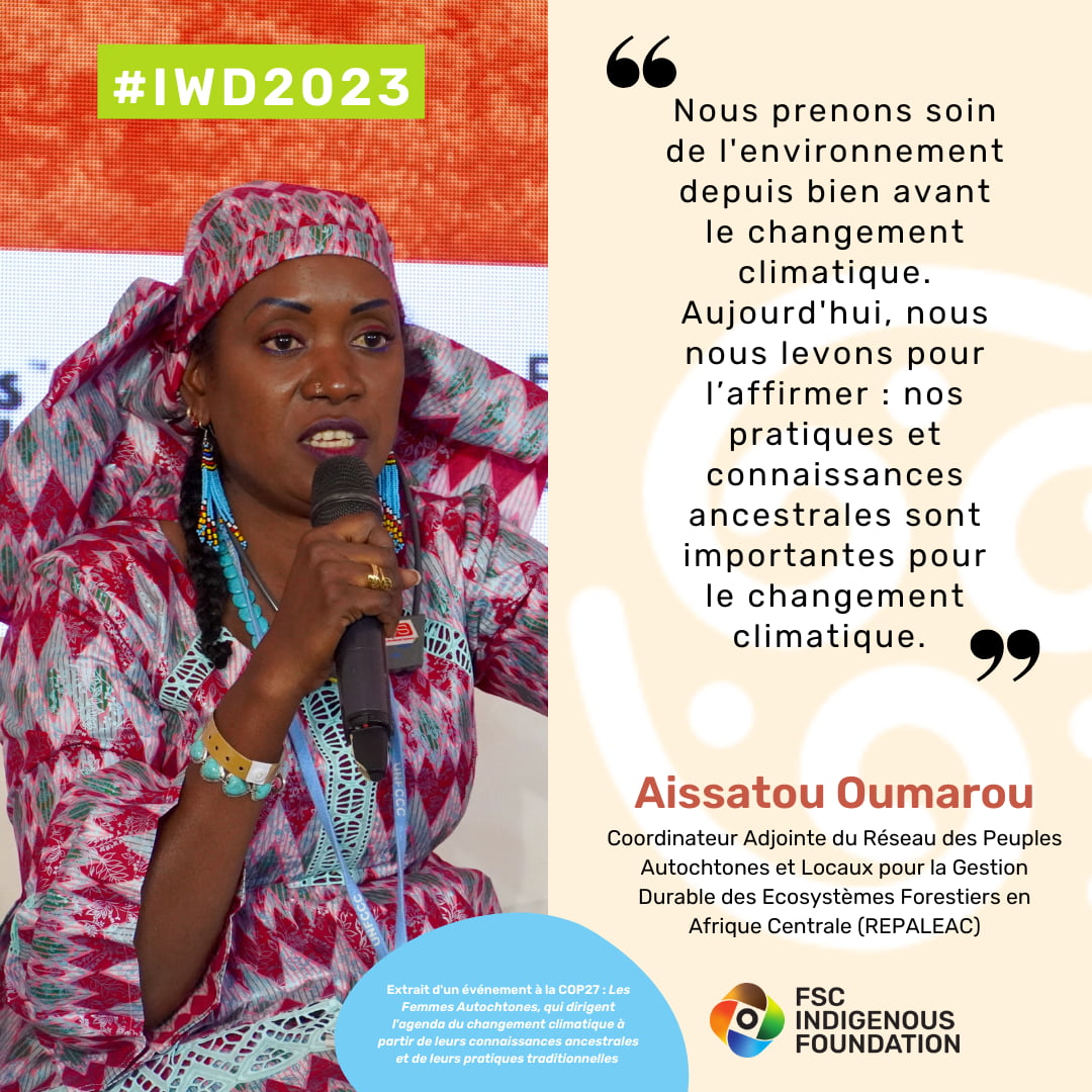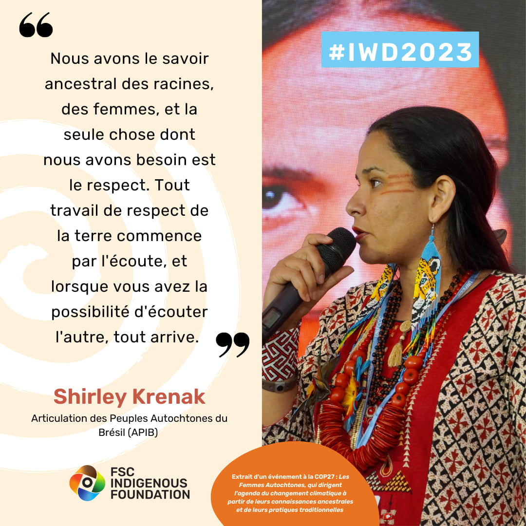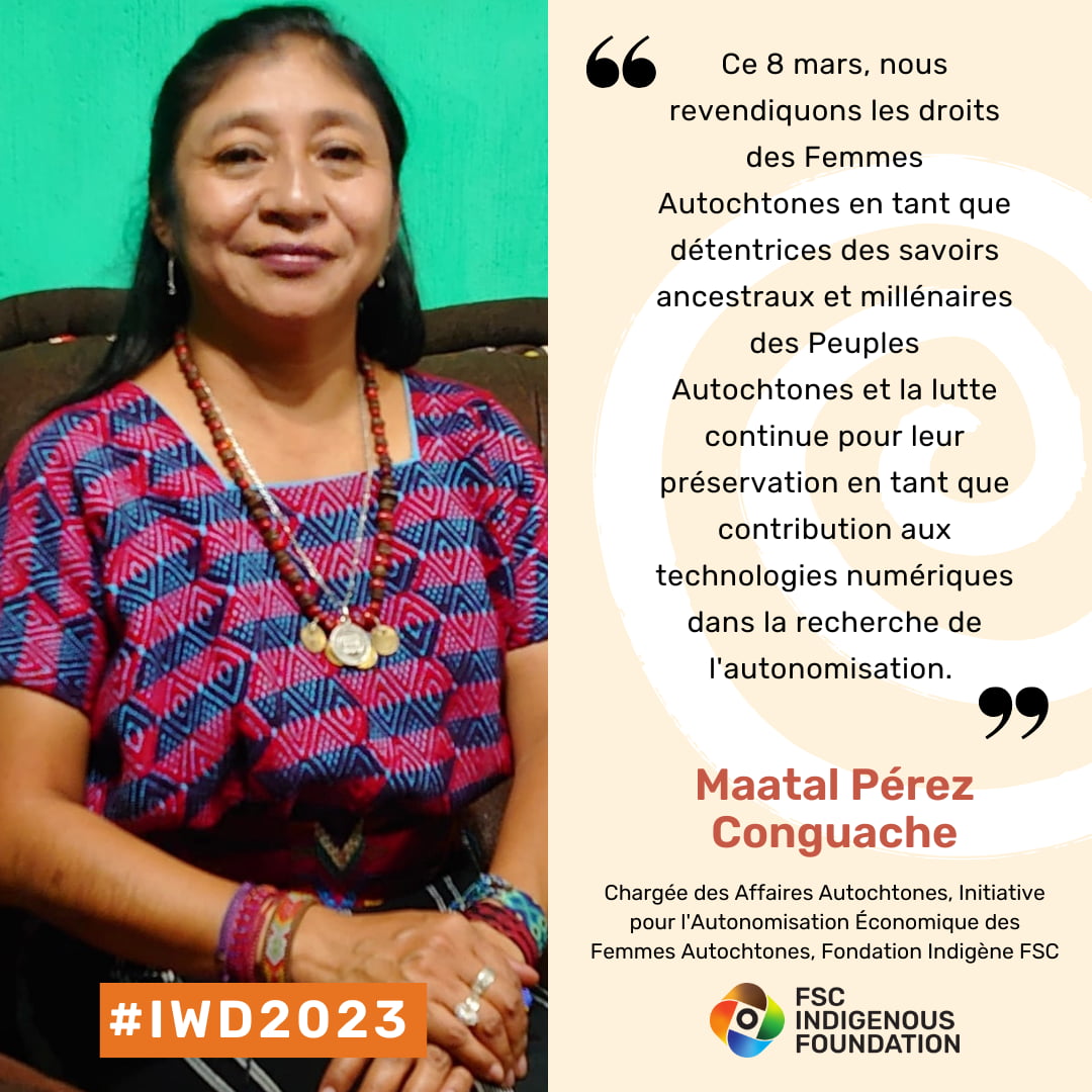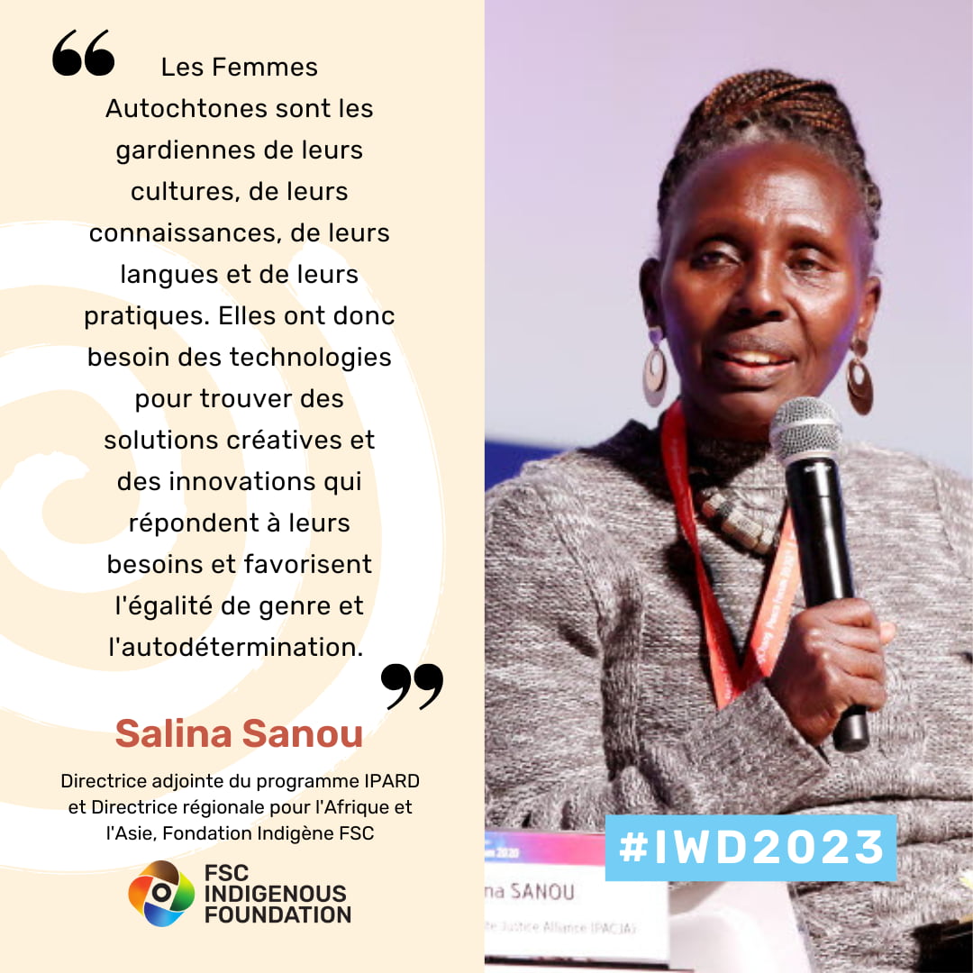 Nous vous invitons à partager vos selfies vidéo avec nous, en nous taguant @fscindigenousfoundation sur Instagram, Facebook, LinkedIn et @fsc_if sur Twitter et les hashtags #IWD2023 #DigitALL, en répondant aux questions suivantes :