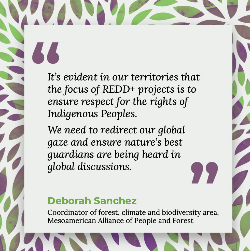 Many REDD+ projects also yield impactful societal benefits, including economic ones. We support these projects because, to date, they have provided a significant avenue to secure our legal rights, provide the financial means to value our ancestral practices, and protect our lands and Mother Earth. These projects have created the conditions to strengthen Indigenous finance to drive sustainable livelihood opportunities, access to healthcare and education, women’s empowerment, community development initiatives, and much more.